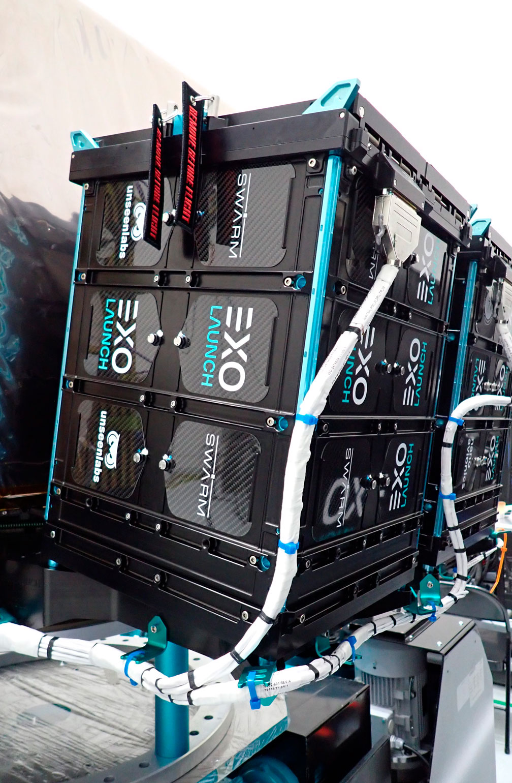 To maximize payload capacity and cost-effectiveness for its customers, Exolaunch used the Atlas, Jupiter and Neptune-type EXOports, flexible multi-satellite adapters designed to optimise microsats and cubesats distribution on a single Falcon 9 port.