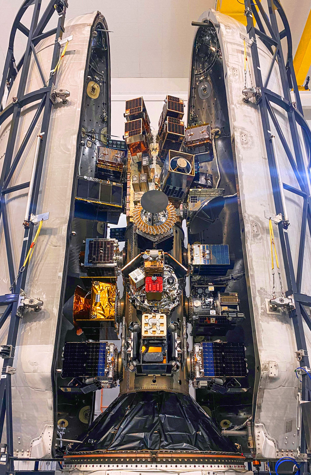 72 spacecraft, including CubeSats, MicroSats, a re-entry capsule, and orbital transfer vehicles