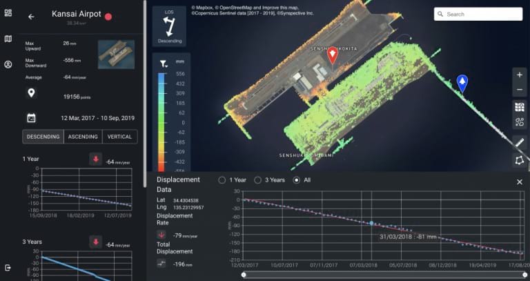 The “Synspective Land Displacement Monitoring” service originates from InSAR*2 analysis that is capable of detecting timely vertical land displacement, in millimeters, over a wide area. This Service enables periodical observation and understanding of land subsidence and deformation. It takes a lot of time and labor to understand the risk of land subsidence and landslides over a wide area. By leveraging Synspective's new service, cost and time is reduced, when compared to the traditional observation and control techniques associated with these ground change risks. This new service's expected use is multifaceted and can be applied in many land risk management projects such as construction projects, airport maintenance projects, and subway development projects, among others.